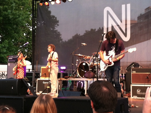Luna’s performance at McCarren, which was part of the Northside Festival, drew a good crowd of both aging and young hipsters as they watched Luna—guitarist/singer Dean Wareham, guitarist Sean Eden, drummer Lee Wall, and bassist Britta Phillips—run through several of the band’s beloved songs from its catalog: among them “Malibu Love Nest,” “Chinatown,” “Sideshow by the Seashore,” “Speedbumps,” “Tiger Lily,” “Tracy I Love You,” “Bewitched,” and “Friendly Advice.”